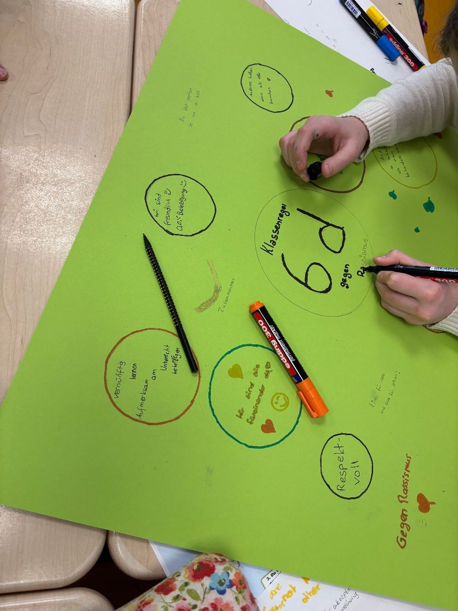 Die Schülerinnen und Schüler erarbeiteten sich die Inhalte zu den verschiedenen Themen in kleinen Gruppen anhand mehrerer Stationen. Dabei beantworteten sie moralische Fragen zum Thema Kinderrechte, diskutierten über Gerechtigkeit, hinterfragten Vorurteile, erstellten Social-Media-Stories oder überprüften verbreitete Narrative über Migration. Im sechsten Jahrgang übernahmen Schülerinnen und Schüler der SV die Rolle der Coaches und vermittelten den Klassen die Inhalte. Auch methodisch wurden die Themen abwechslungsreich und altersgerecht dargeboten. Das Spektrum reichte von einer Fantasiereise über spielerische Einstiege, Vorträge und Dokumentationen bis zu zahlreichen Diskussionen, in denen die Schülerinnen und Schüler die Inhalte reflektierten und dafür sensibilisiert wurden. Entsprechend positiv fiel auch die Rückmeldung vieler Schülerinnen und Schüler aus, die an diesem Tag neue Erkenntnisse und Eindrücke sammeln konnten.