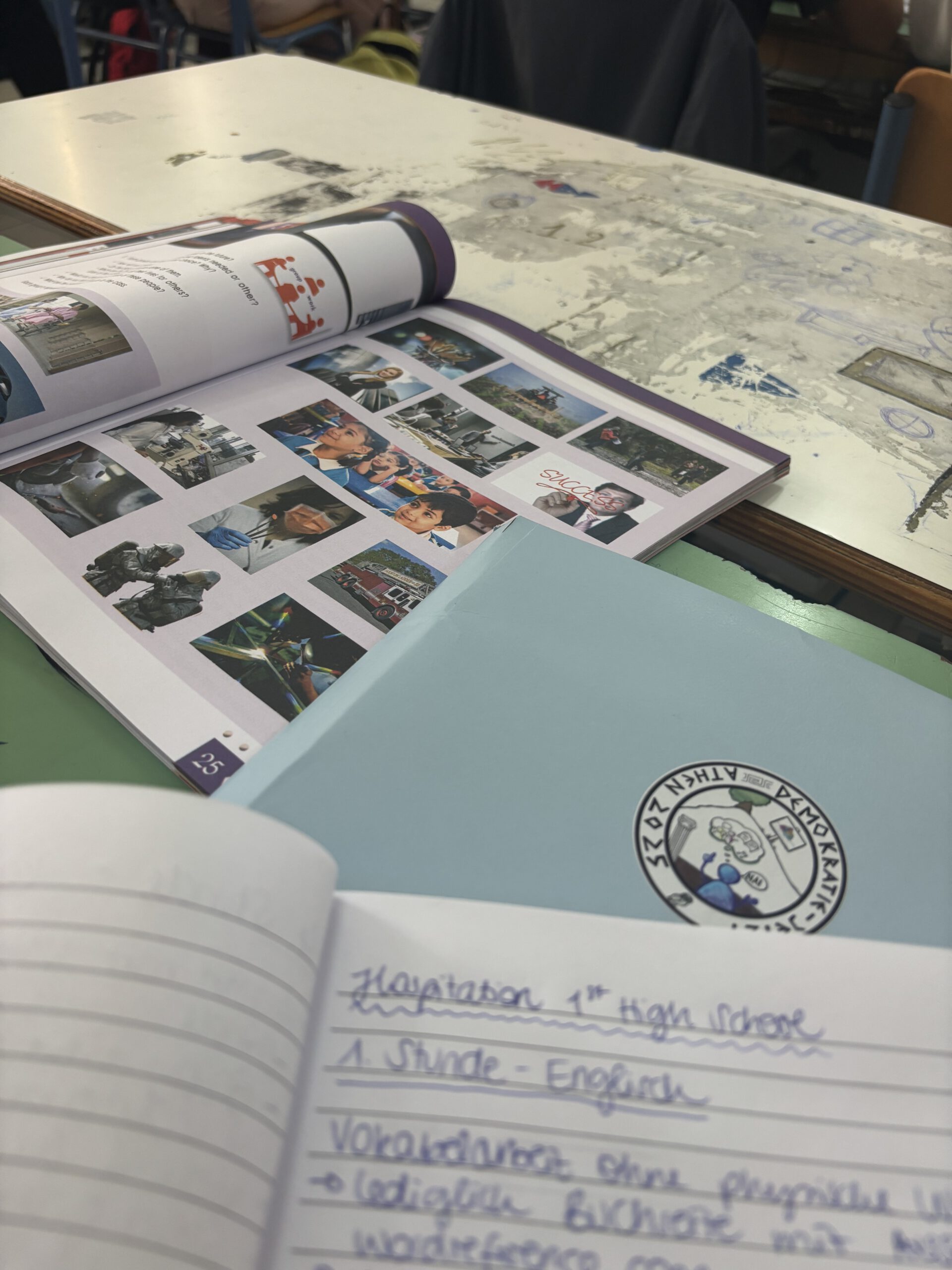 Beispielsweise müssen alle in der Oberstufe Latein und Altgriechisch belegen. Außerdem gibt es alte Geschichte (nämlich die griechische) und moderne. Der Unterricht läuft sehr klassisch frontal ab, eine Gruppenarbeit habe ich nicht gesehen. Aber die Lehrkräfte und Klassen haben viel miteinander gelacht im Unterricht – auch weil einige eben nicht konzentriert mitarbeiten. Kurios fand ich, dass es keine Begrüßung gab. Man mag über das langgezogene „Guuuuten Moorgen Frau Beck“ streiten, aber das ich würde doch einem kalten Start vorziehen. Ich stelle aber fest: Schülerinnen und Schüler sind sich doch sehr ähnlich und haben überall die gleichen Sorgen und Motivationen. „Hauptsache, ich finde einen Beruf, bei dem ich viel verdiene“ war eine beliebte Antwort auf die Frage der persönlichen Zukunft im Englischunterricht.
