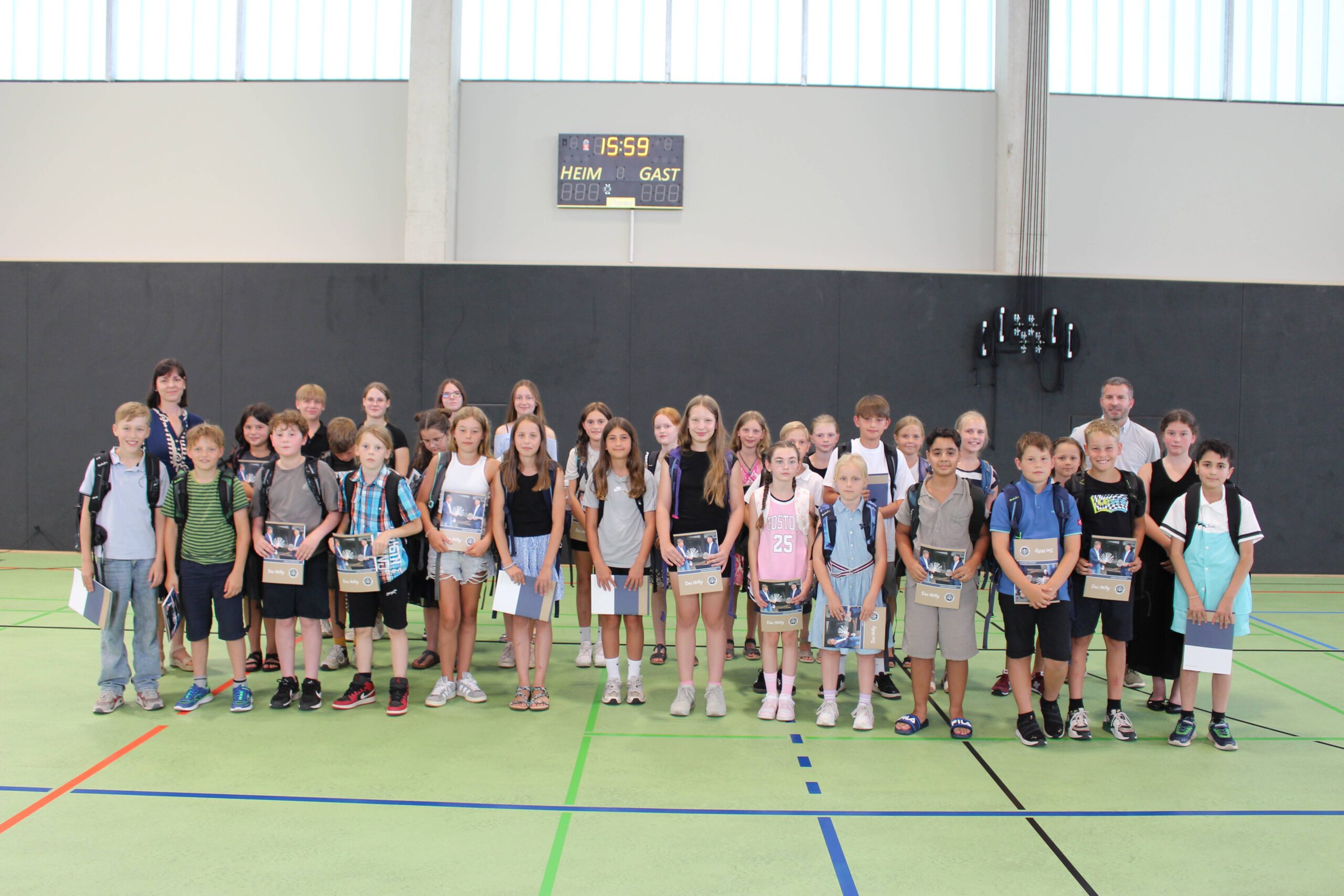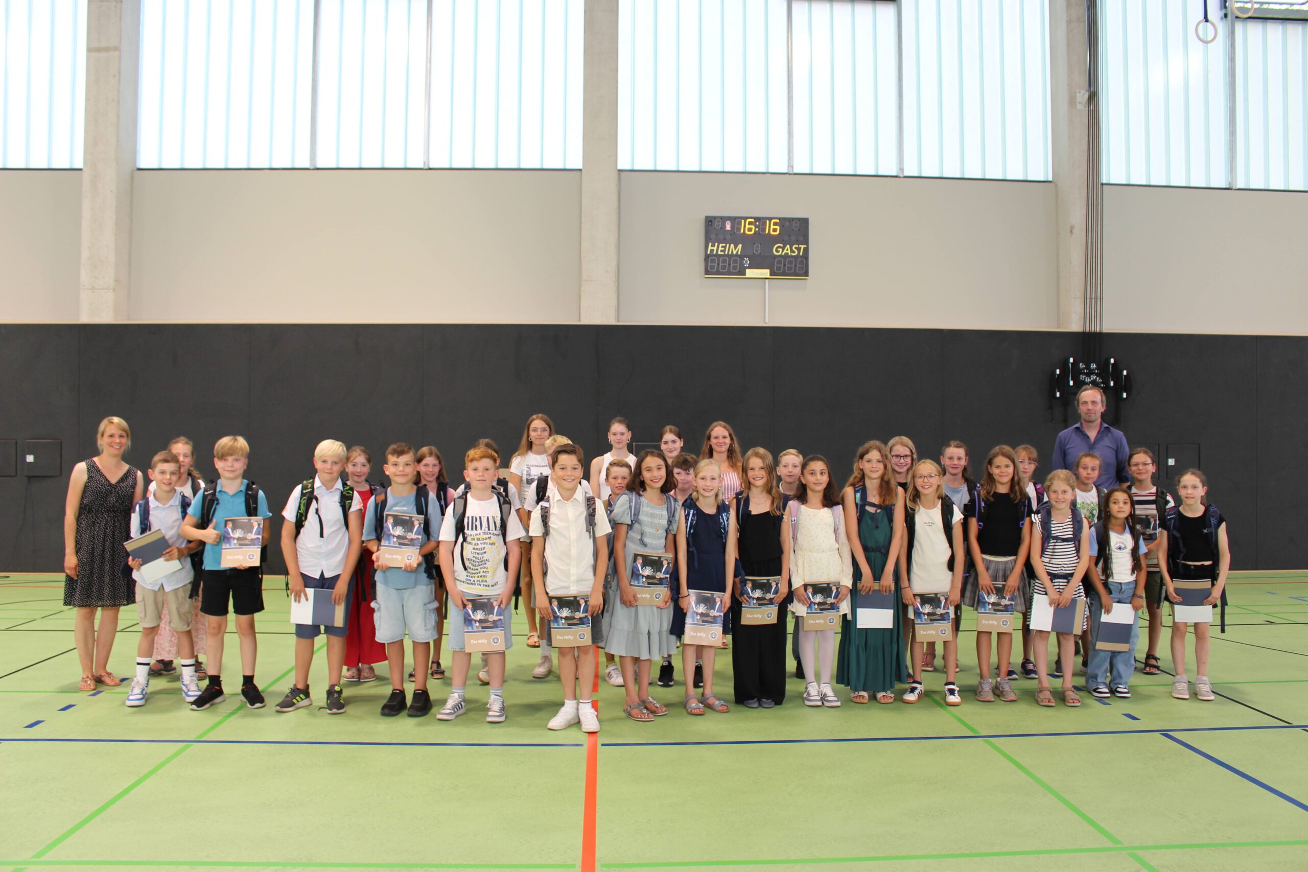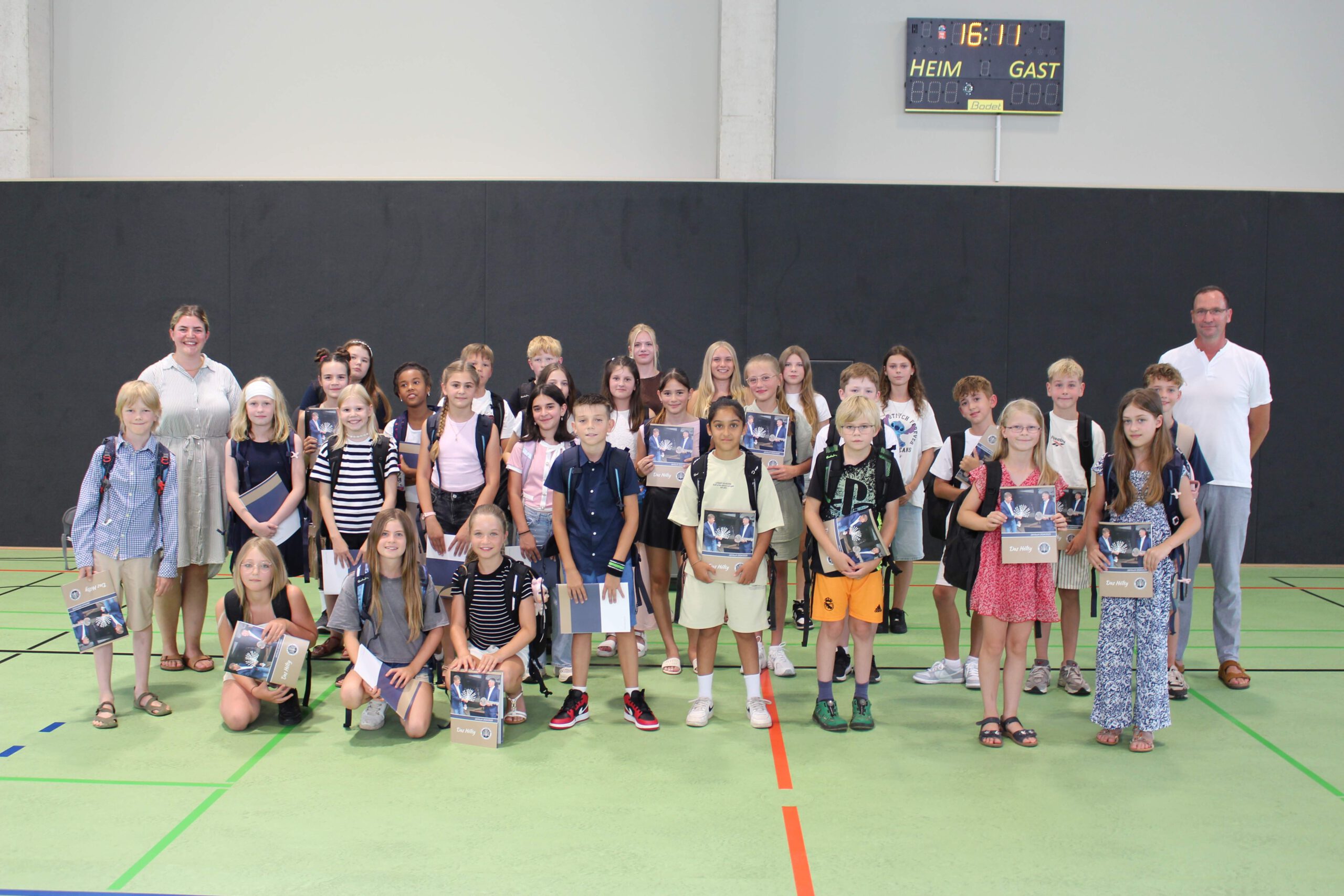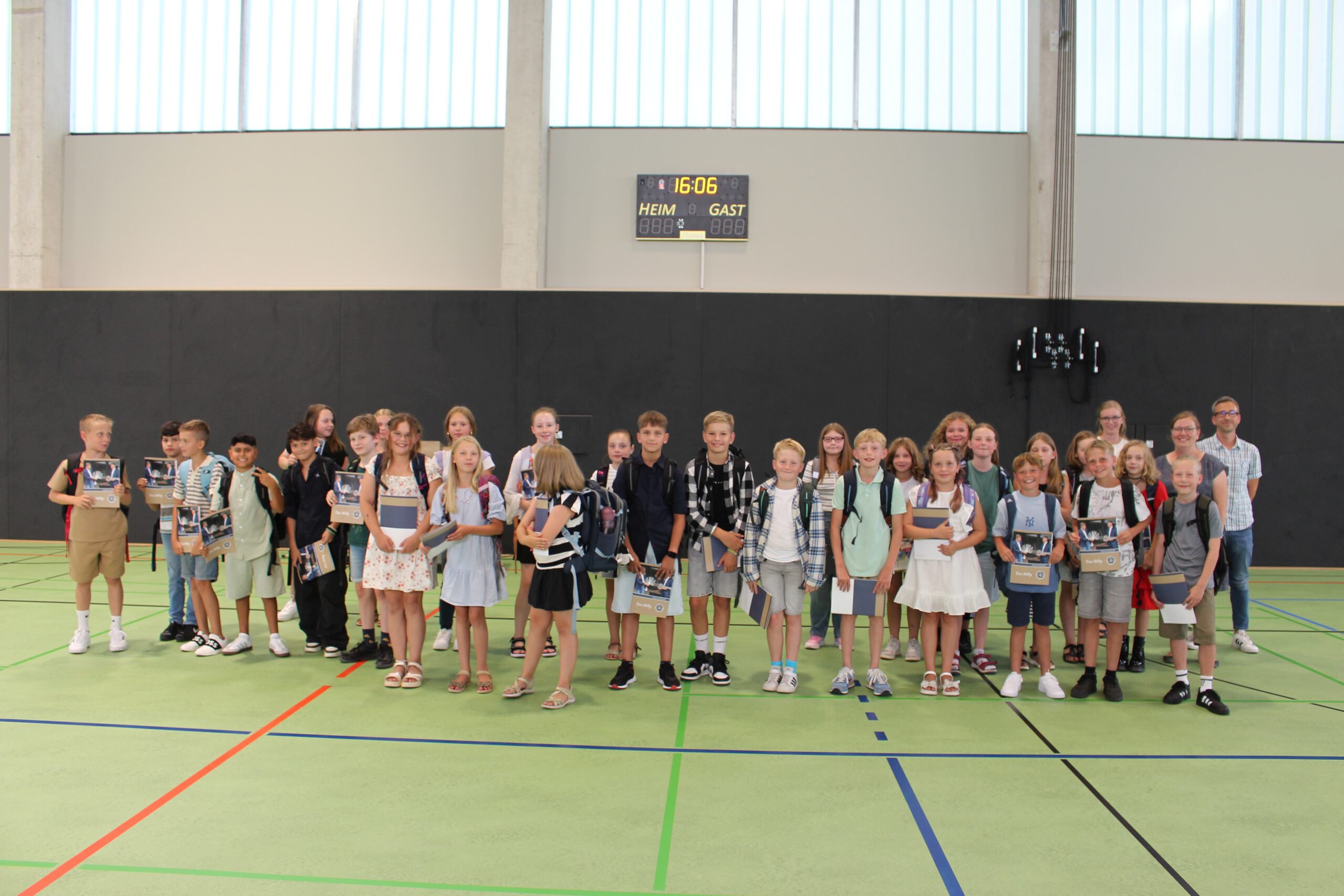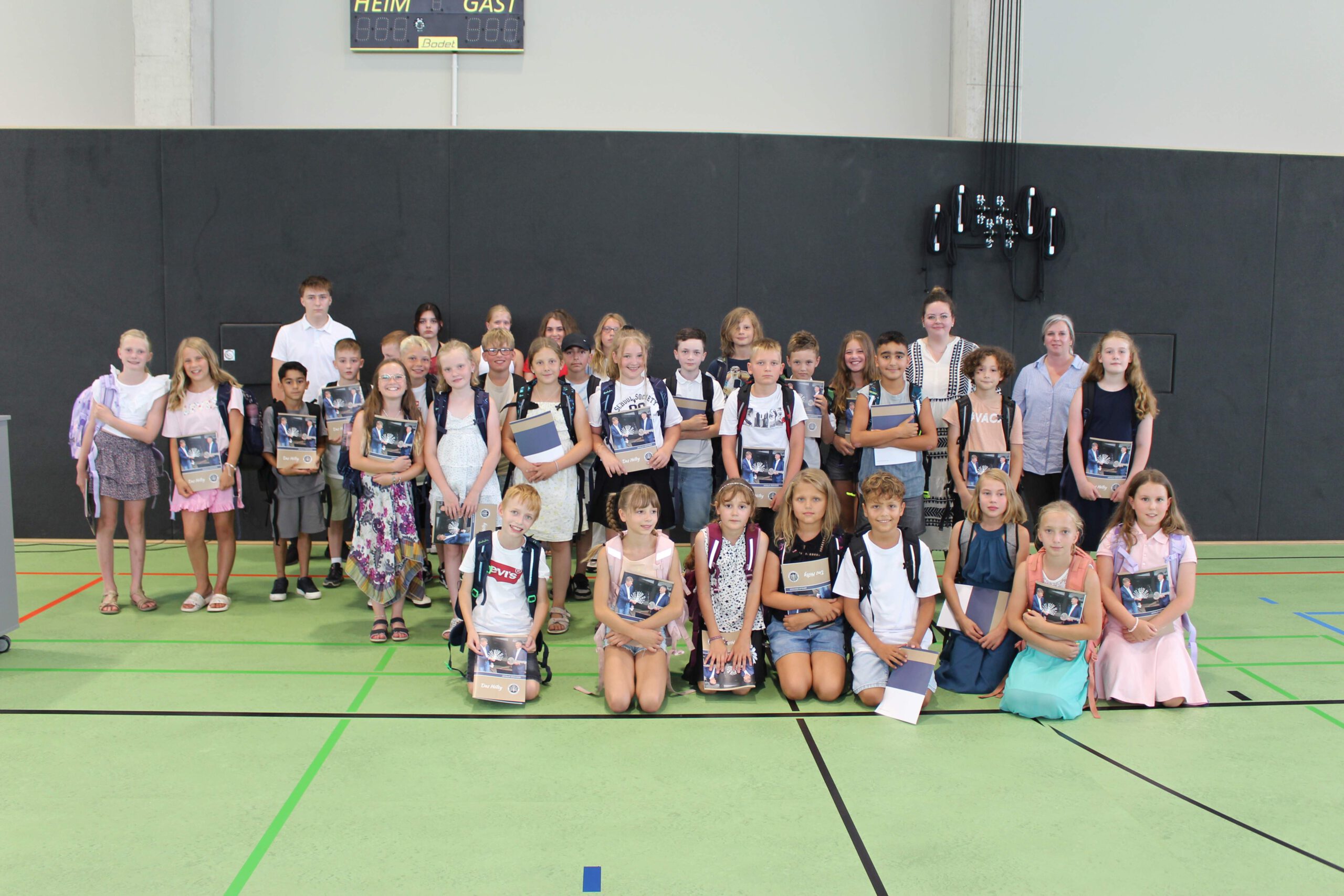 Schließlich wurde es für die Kinder spannend: Die neuen Klassenleitungen stellten sich vor. Herr Aßmus und Frau Weiß übernehmen die 5a, Frau Beck und Herr Grünert die 5b, Frau Rolfes und Herr Stapel die 5c, Herr Franke und Frau Elsner die 5d und Frau Goeda und Frau Münzer die 5e.