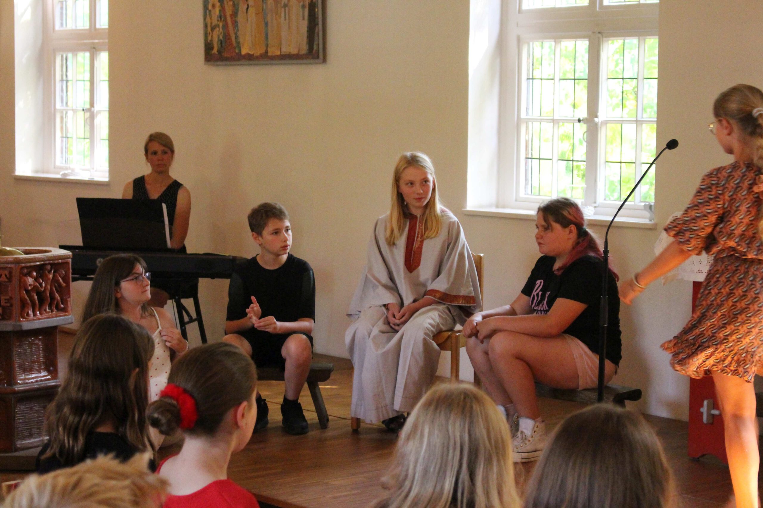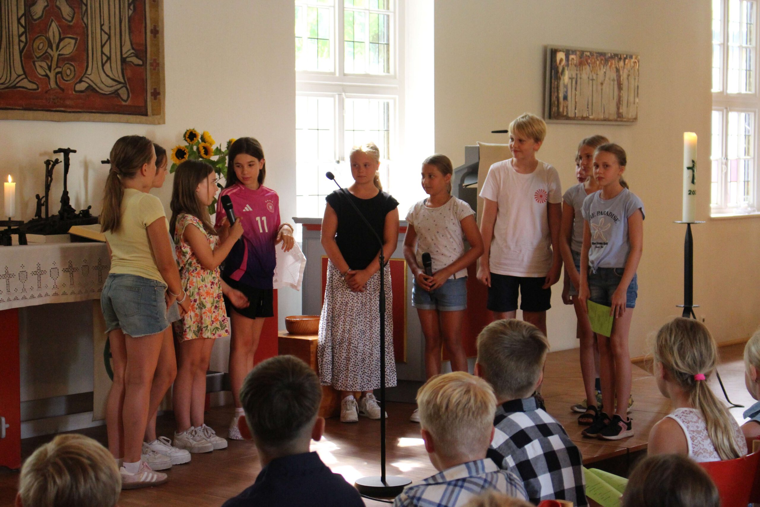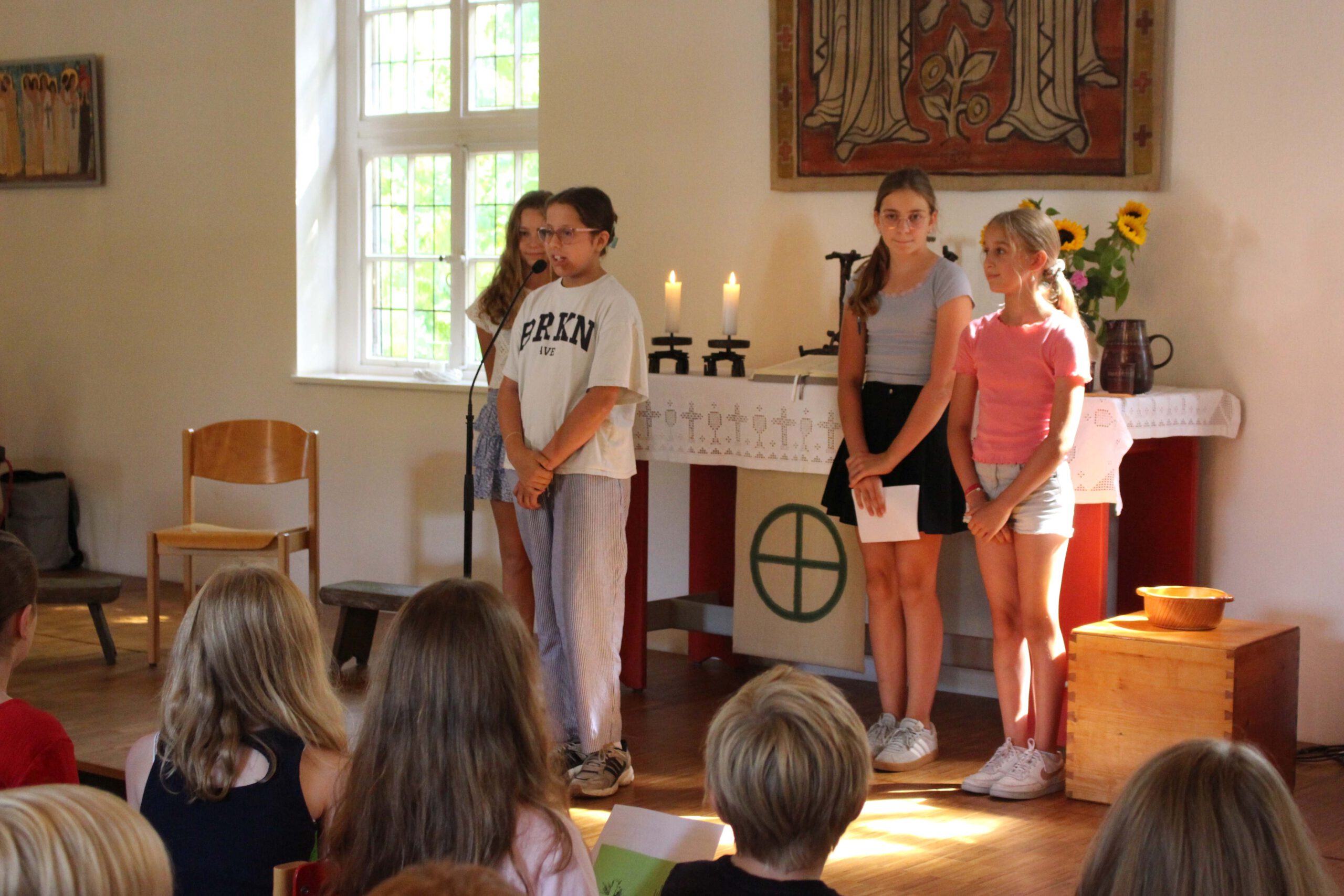 Der Einschulungsgottesdienst, der im Vorfeld stattfand, zerstreute die Ängste und Sorgen der neuen Fünftklässlerinnen und Fünftklässler und vermittelte mit Fürbitten, Rollenspielen und einer biblischen Geschichte die Einstellung, dass man nicht perfekt sein muss und am Hölty-Gymnasium eine hilfsbereite Gemeinschaft auf sie wartet.