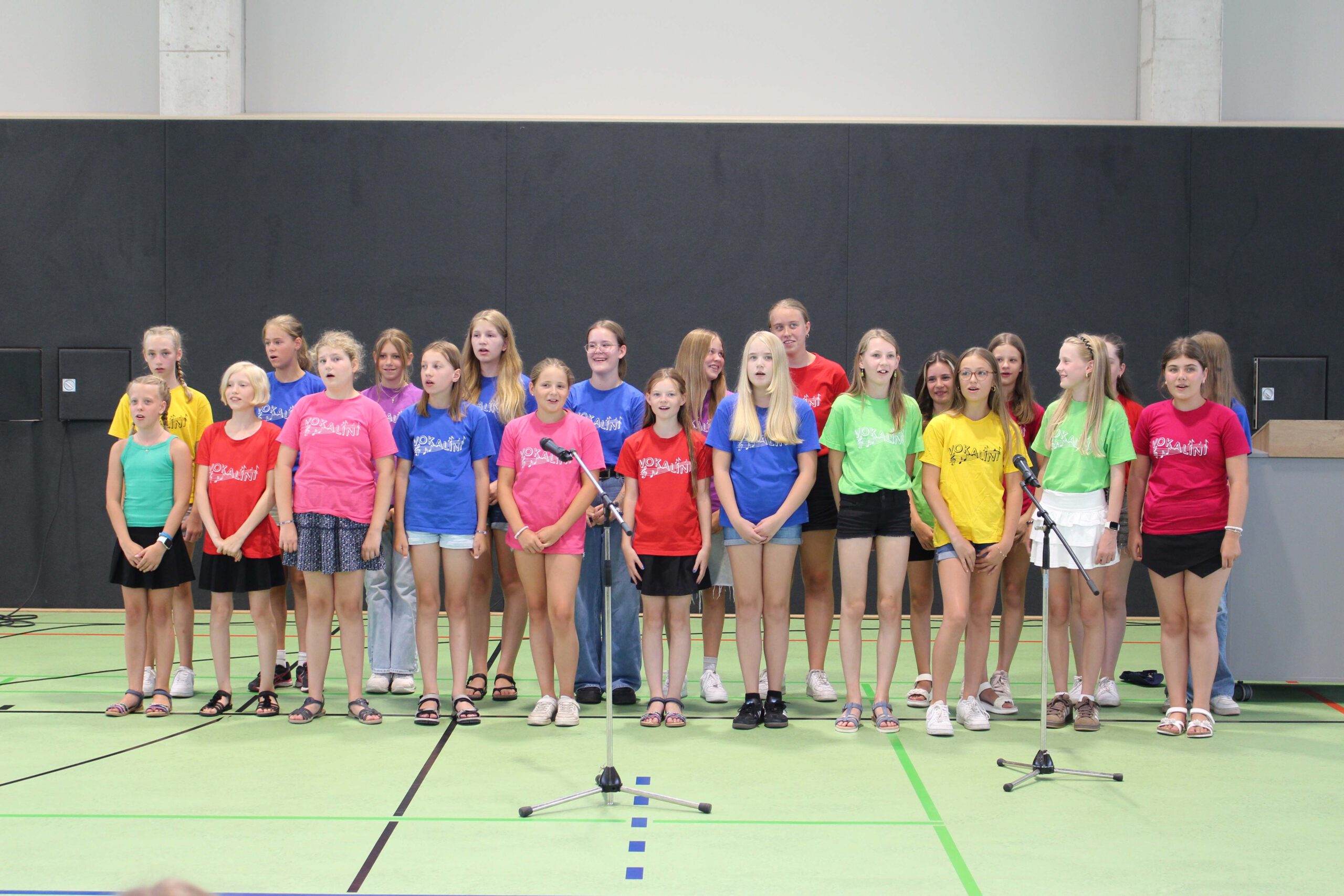 Musikalisch umrahmt wurde die Einschulungsfeier gewohnt mitreißend vom Unterstufenchor „Vokalini“ unter der Leitung von Frau Weiß.