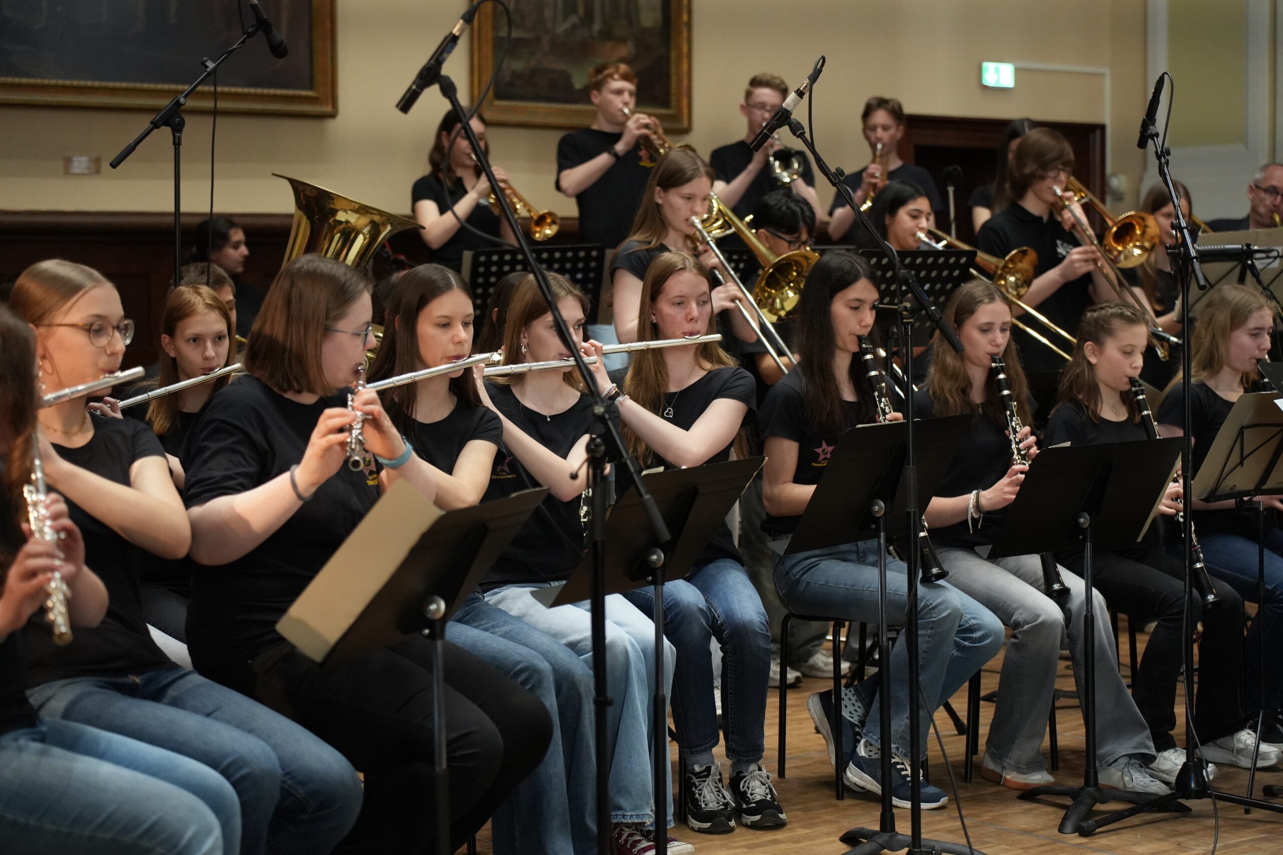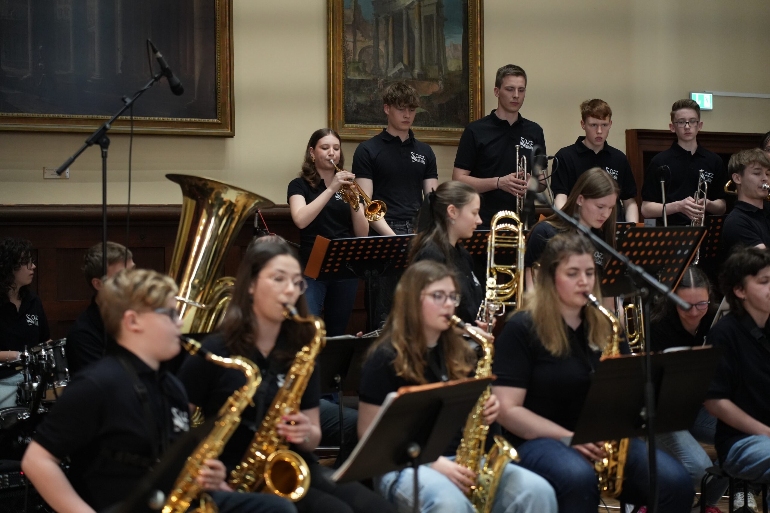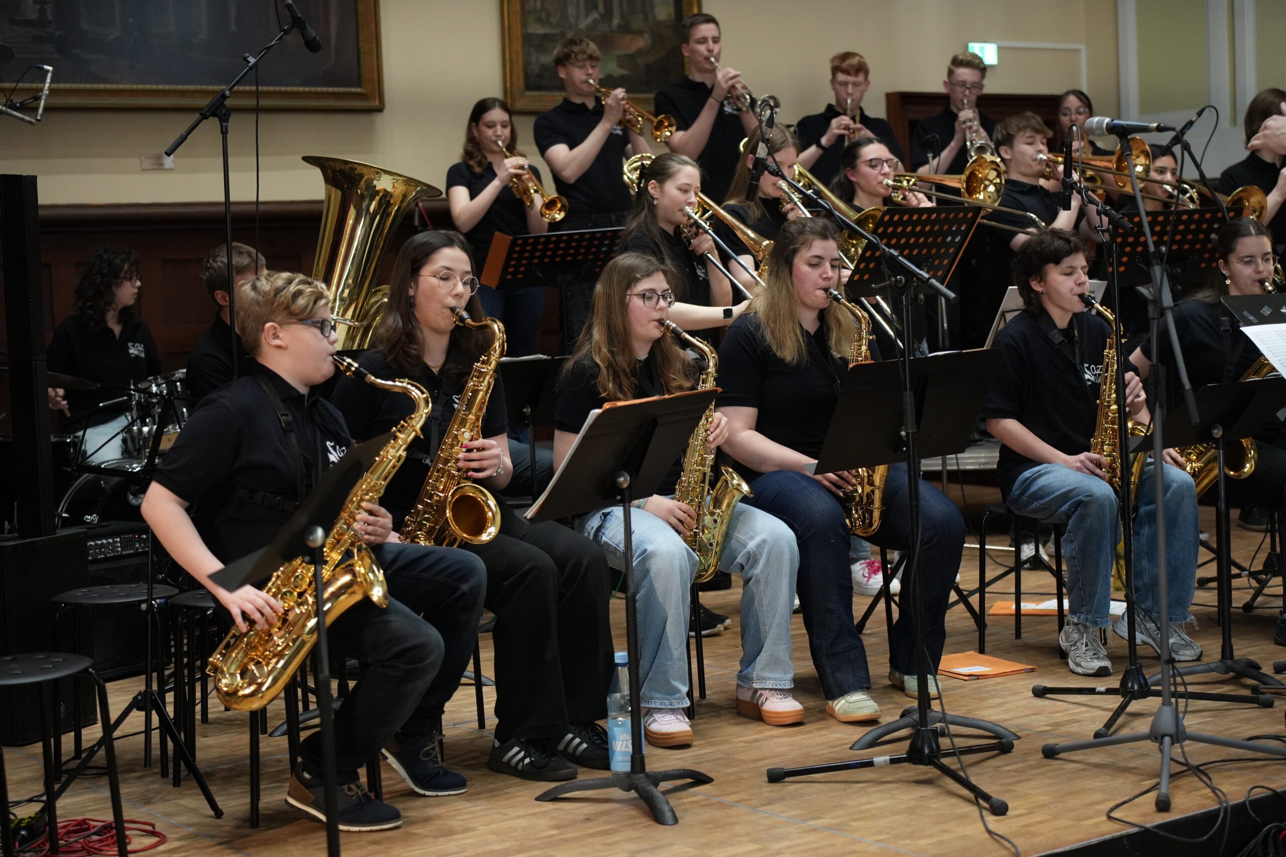 Zwei schwungvolle Aufritte hatten die YoungStars und die Hölty Bigband beim Jugendjazztag Celle am Samstag, den 25.04.2026. Die beiden AGs überzeugten durch präzises und engagiertes Spiel. Besonders die Soloimprovisationen ließen aufhorchen: Giorgia (Flöte), Liv und Rieke (Altsaxophon), Emmy, Phoebe und Nico (Tenorsaxophon), Lucy (Baritonsaxophon), Laura (Trompete) sowie Nicolas und Yadleen (Posaune). Mit einer gefühlvoll vorgetragenen Ballade von Norah Jones („Don´t Know Why“) überzeugte zudem Flavia am Gesang und der Trompete.
