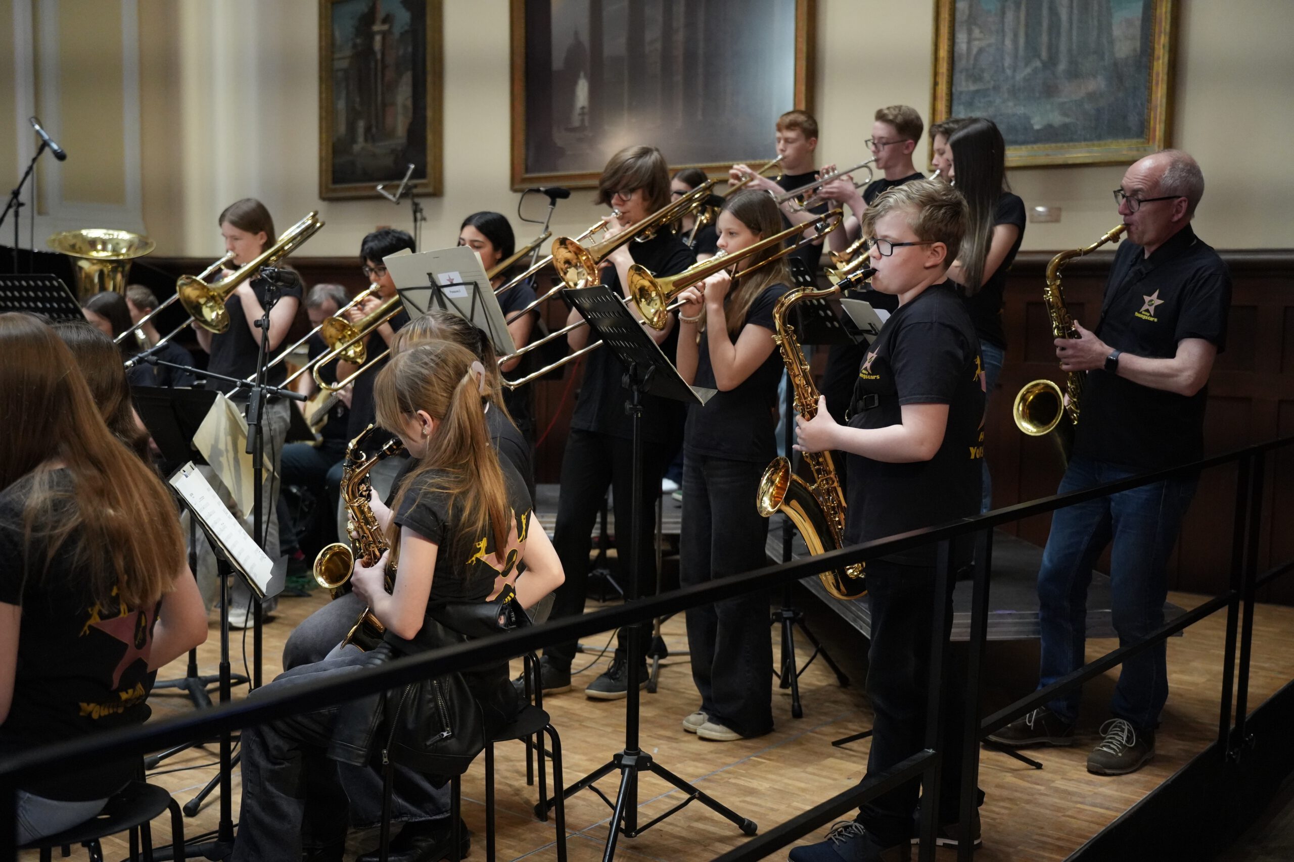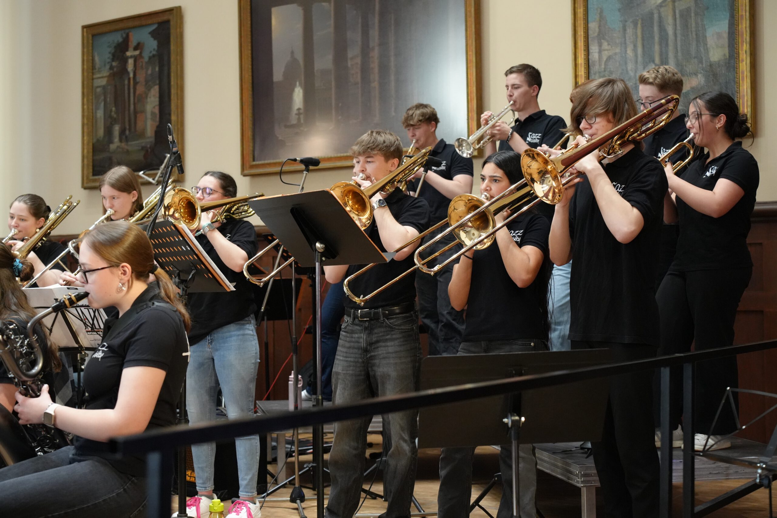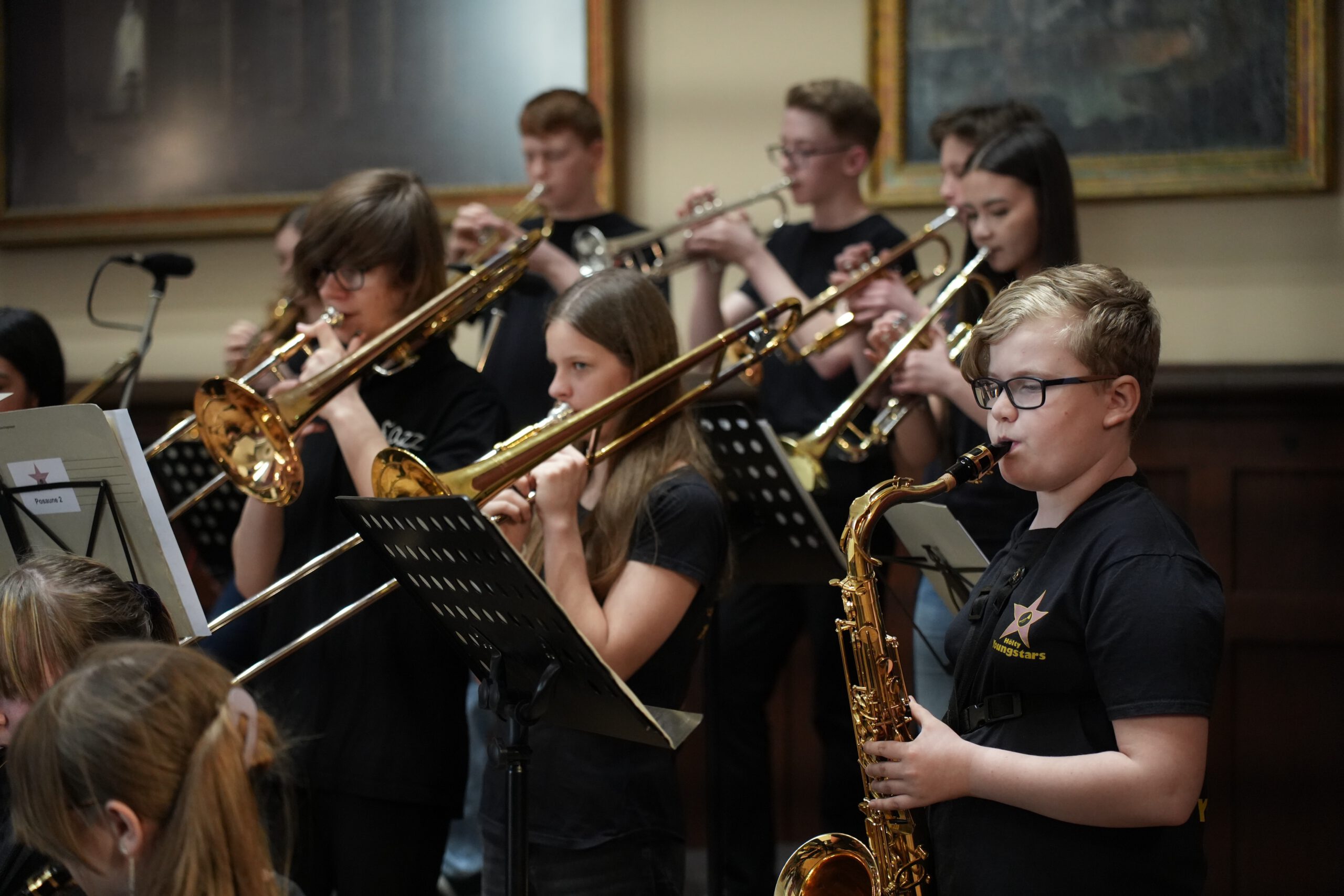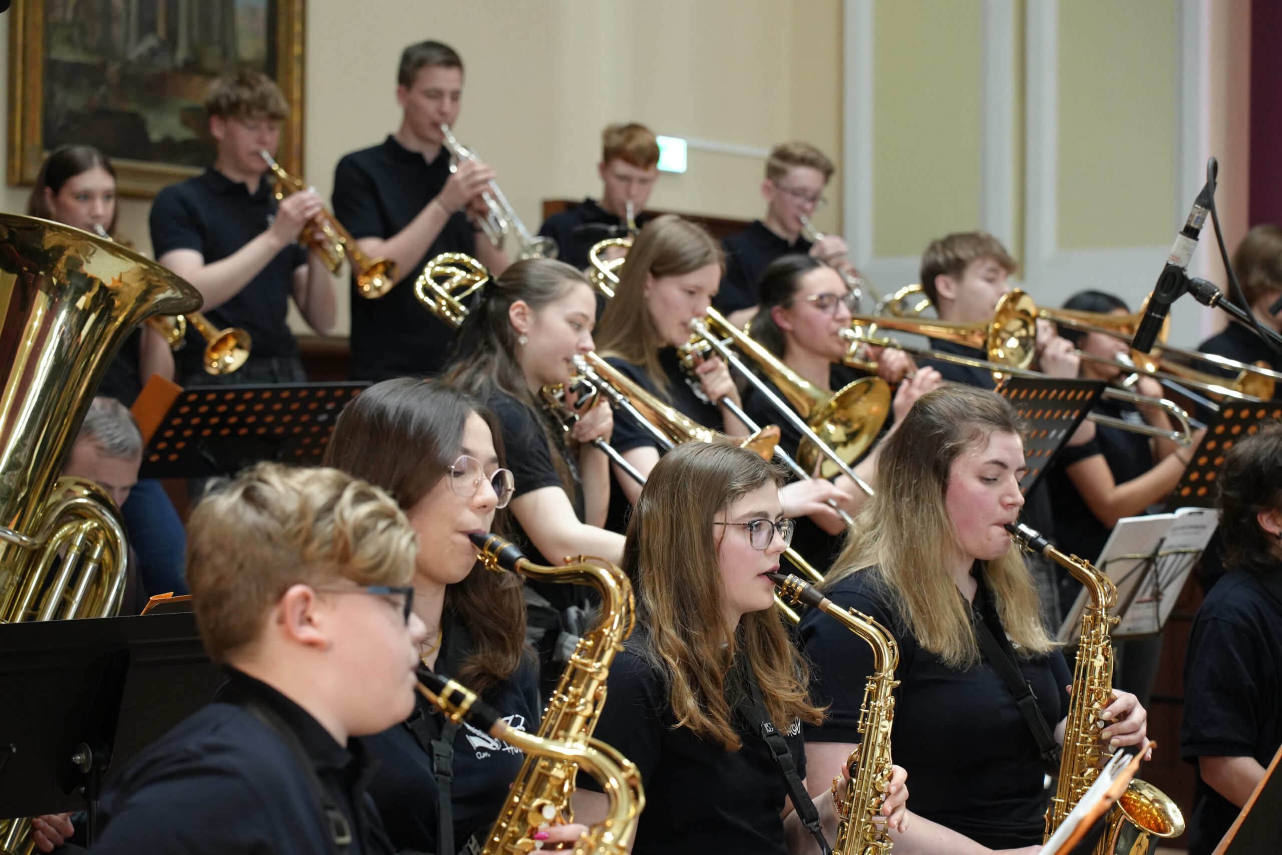 Zwei schwungvolle Aufritte hatten die YoungStars und die Hölty Bigband beim Jugendjazztag Celle am Samstag, den 25.04.2026. Die beiden AGs überzeugten durch präzises und engagiertes Spiel. Besonders die Soloimprovisationen ließen aufhorchen: Giorgia (Flöte), Liv und Rieke (Altsaxophon), Emmy, Phoebe und Nico (Tenorsaxophon), Lucy (Baritonsaxophon), Laura (Trompete) sowie Nicolas und Yadleen (Posaune). Mit einer gefühlvoll vorgetragenen Ballade von Norah Jones („Don´t Know Why“) überzeugte zudem Flavia am Gesang und der Trompete.