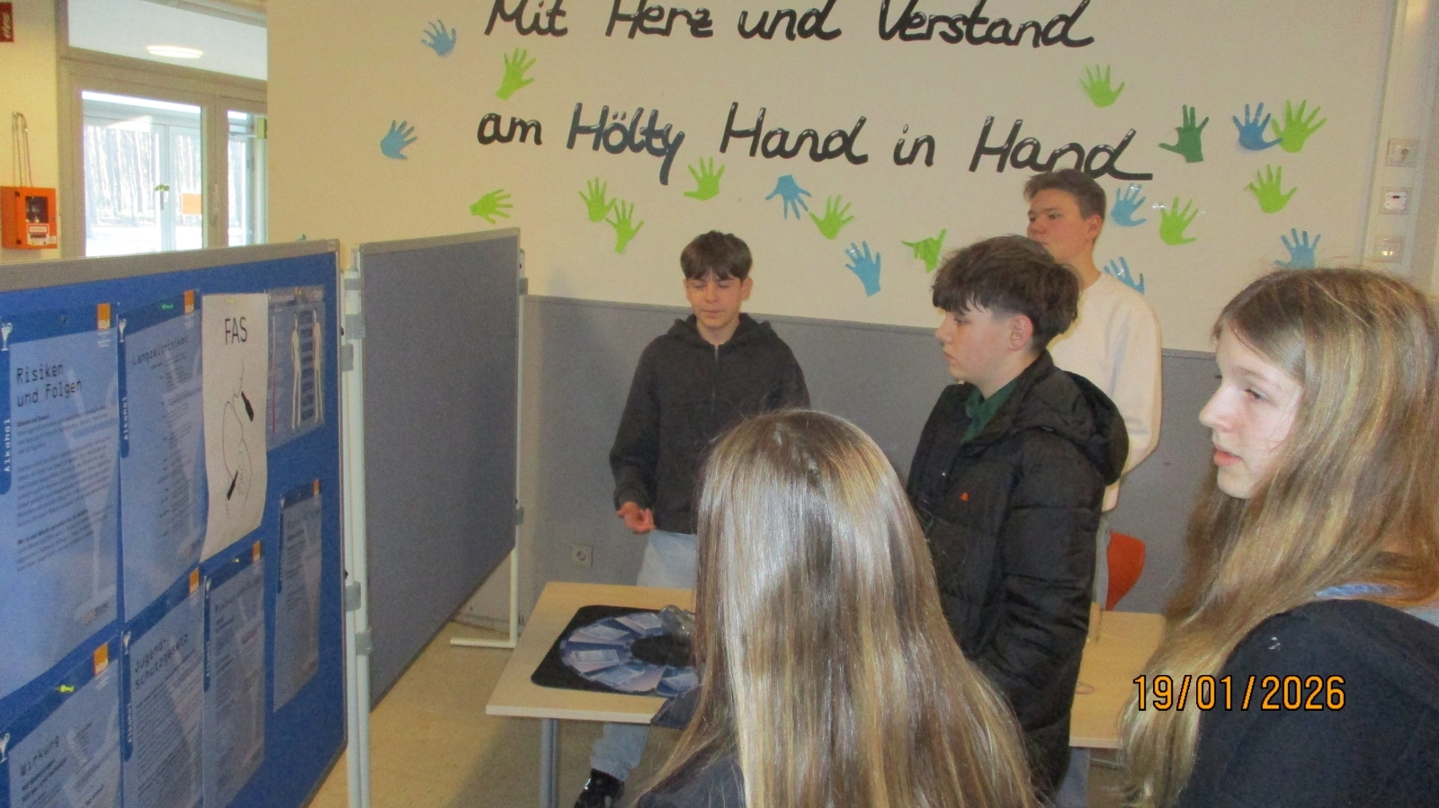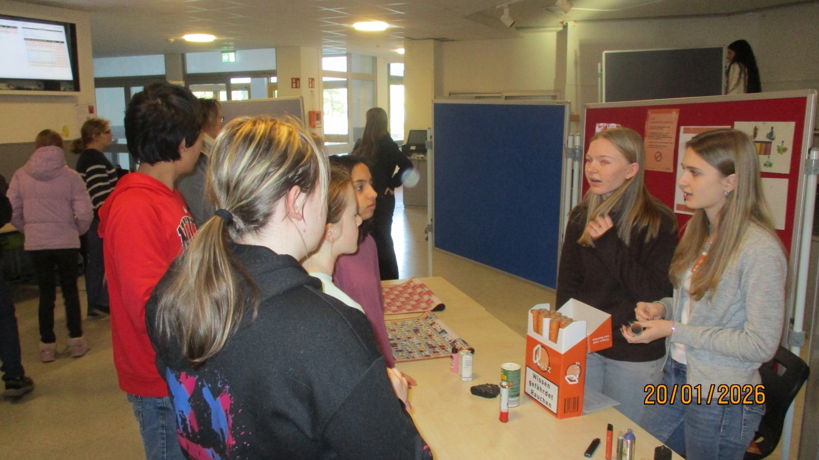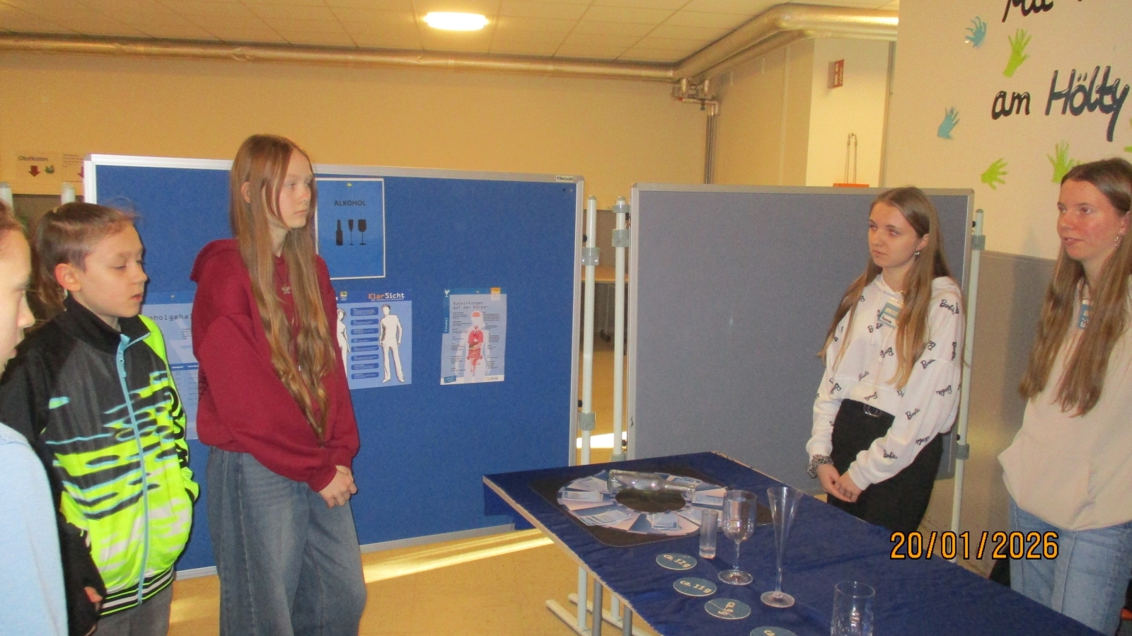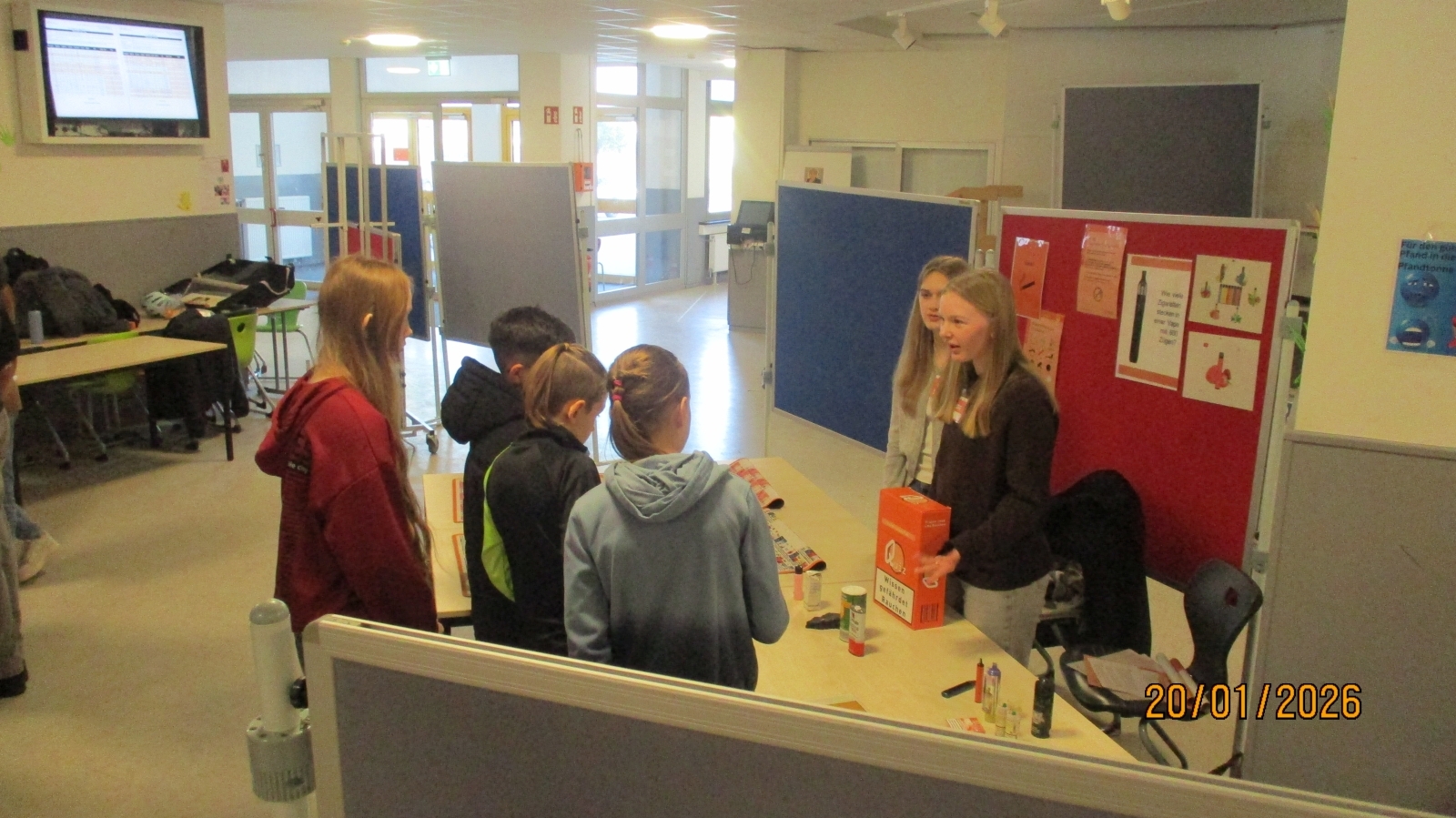 Kompetent und auf Augenhöhe wurde diese Aktion wieder nach einer zweitägigen Schulung in Celle von SchülerInnen aus unseren 10. Klassen durchgeführt, die es verstanden, an jeder Station die Neugierde der Jüngeren zu entfachen und einen regen Austausch miteinander zu entzünden, in der Hoffnung, einen Beitrag zu einem bewussteren Umgang mit gefährlichen Substanzen leisten zu können. Und so theatralisch es klingen mag: Aufklärung kann vielen Menschen ihr Lebensglück retten, denn jeder noch so zunächst scheinbar harmlose Zugang zu Drogen kann ein erster unschuldiger Schritt in die Katastrophe sein und die eigene Gesundheit, Freunde und Familie, den Beruf oder sogar das eigene Leben kosten, und zwar nicht aus Disziplinlosigkeit, sondern aus Unwissenheit.