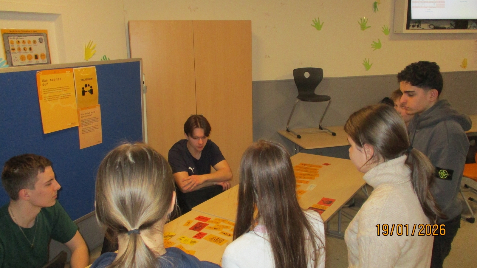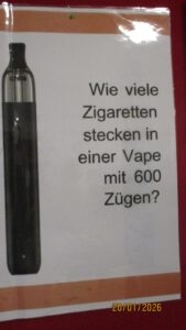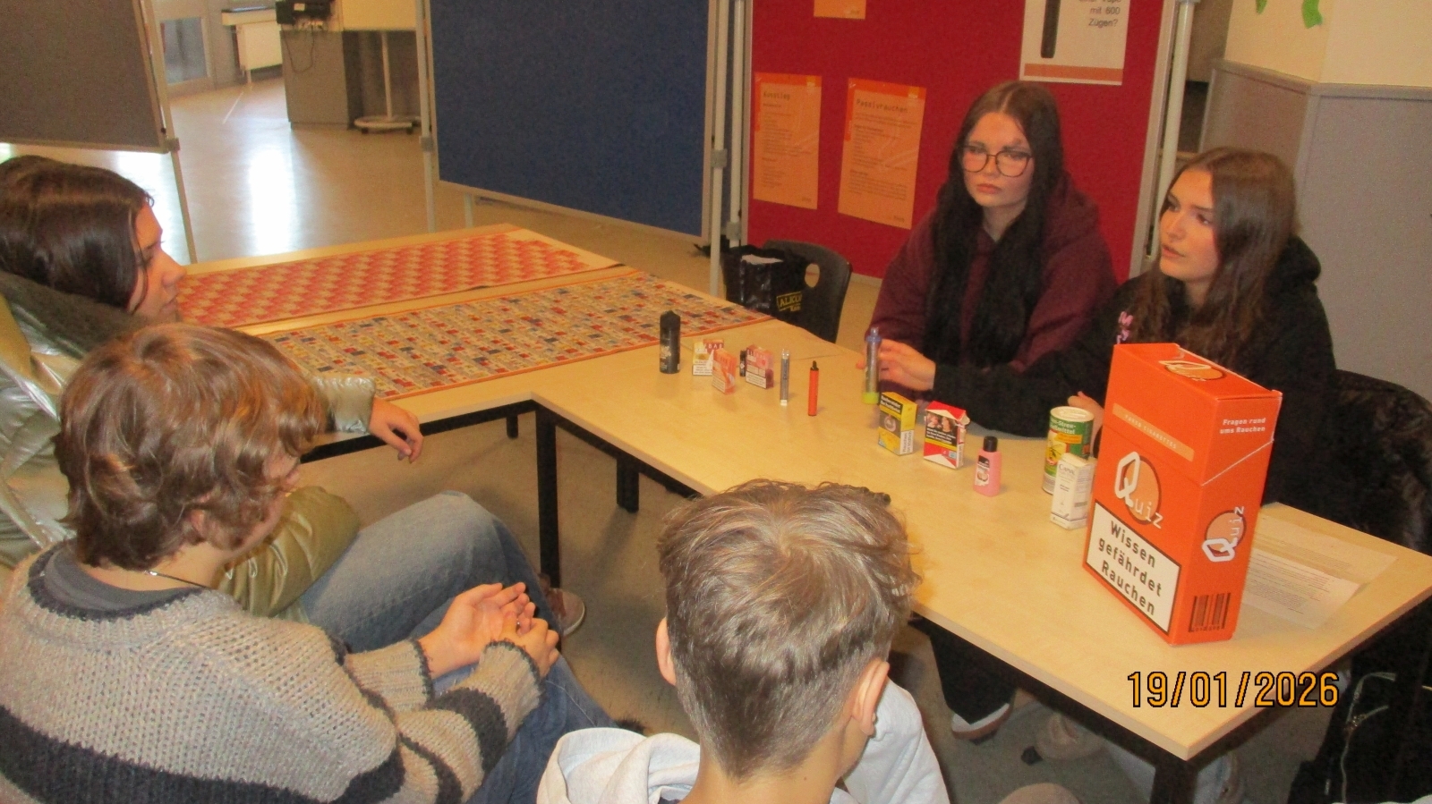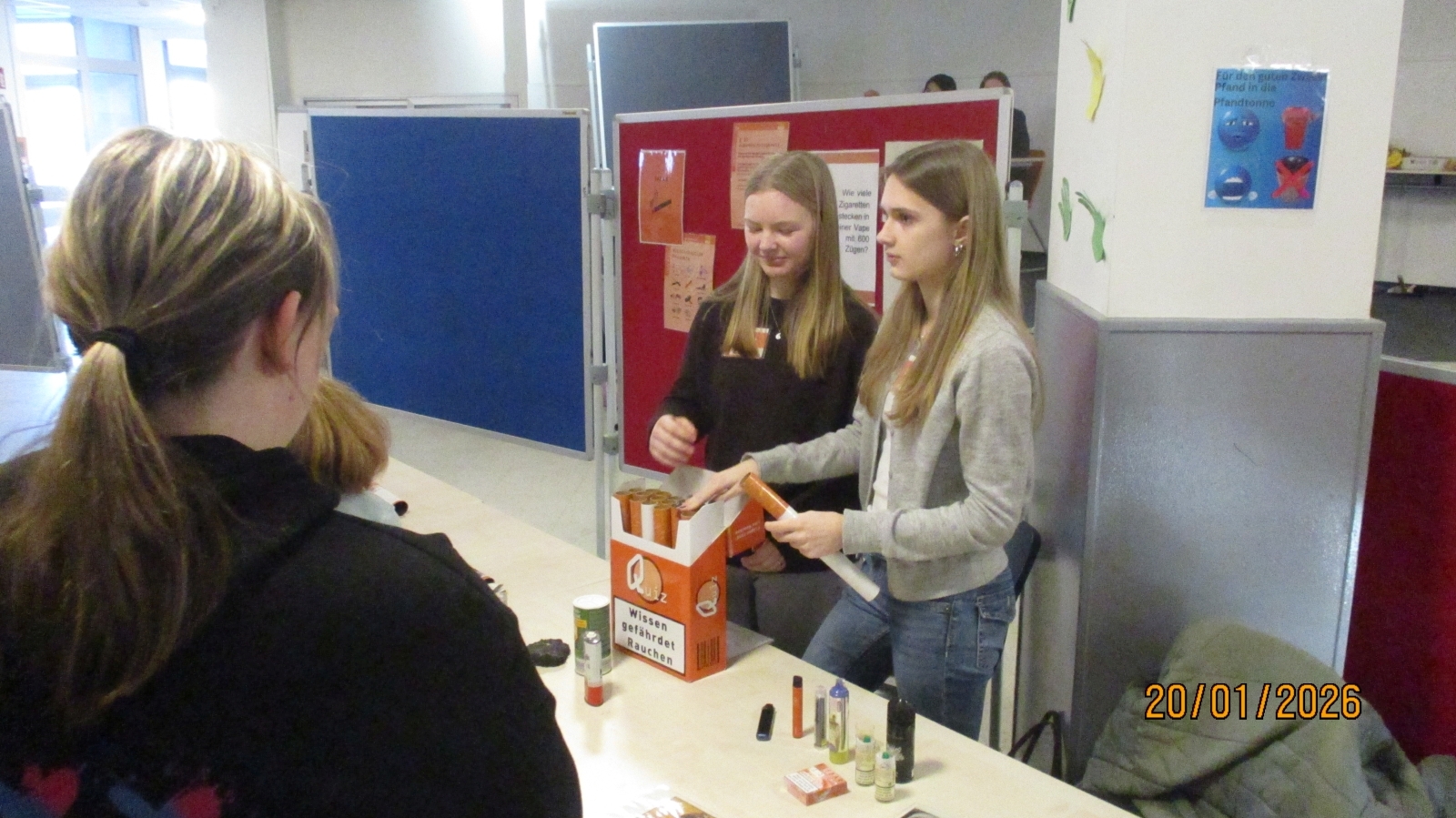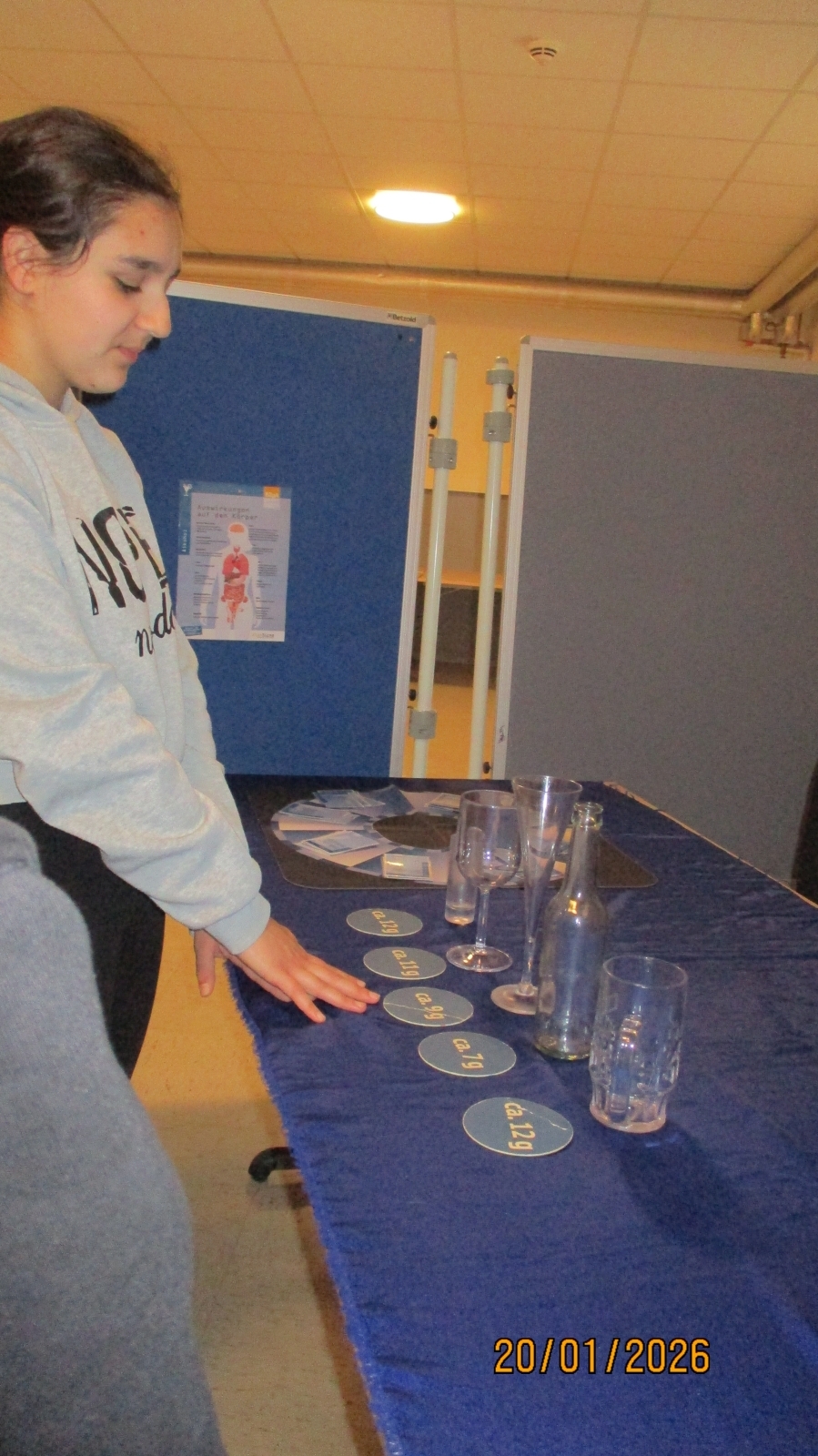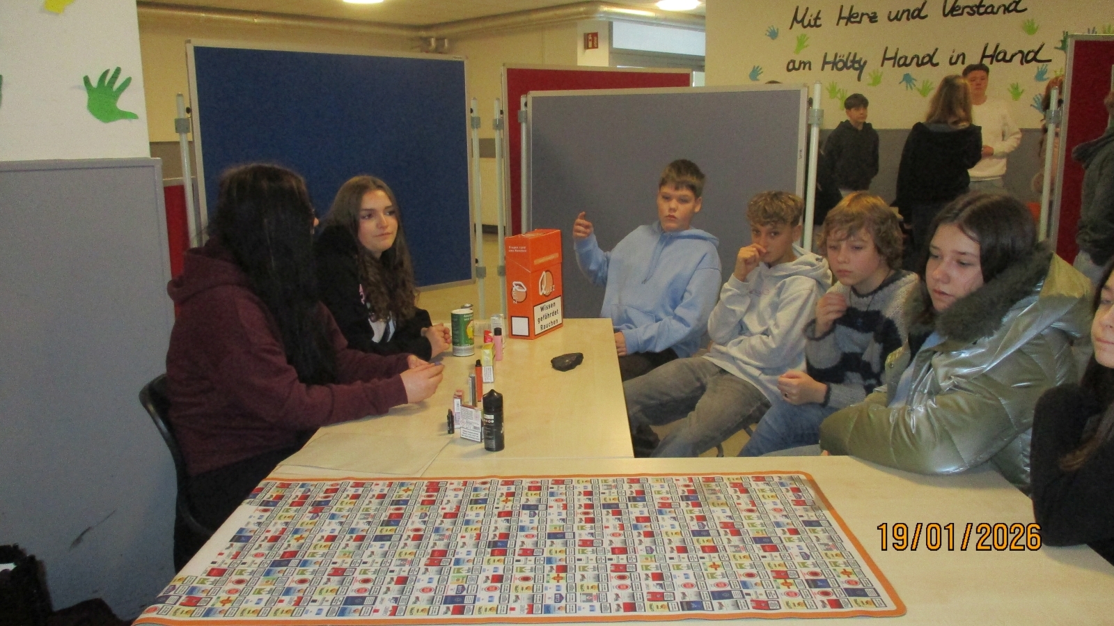Und dieser hat es in sich: Gespickt mit kleinen Mitmach-Aktionen und überraschenden Infos ging es Mitte Januar um die gesellschaftlich immer noch verharmloste Droge Alkohol, um Tabak und Vapes, um hinterlistige Werbetricks, Situationsvarianten und natürlich auch die beliebte Simulation eines Rauschgefühls mit Hilfe der präparierten „Monster“- Brillen.