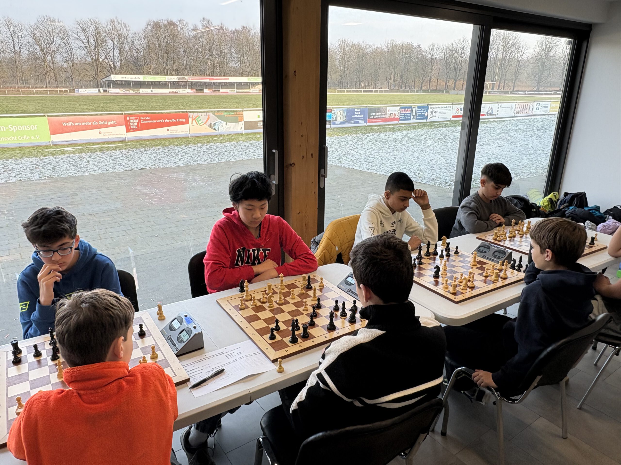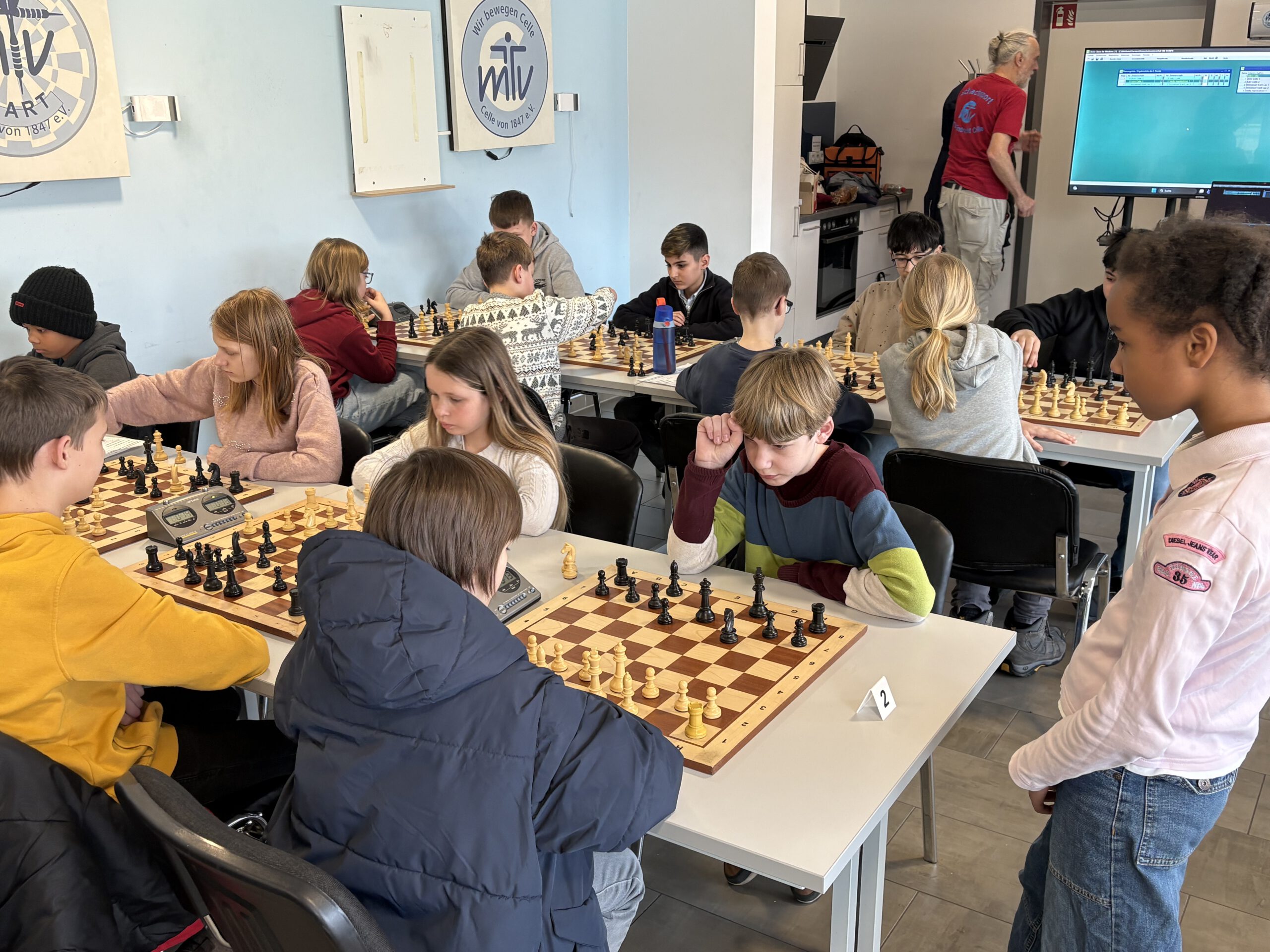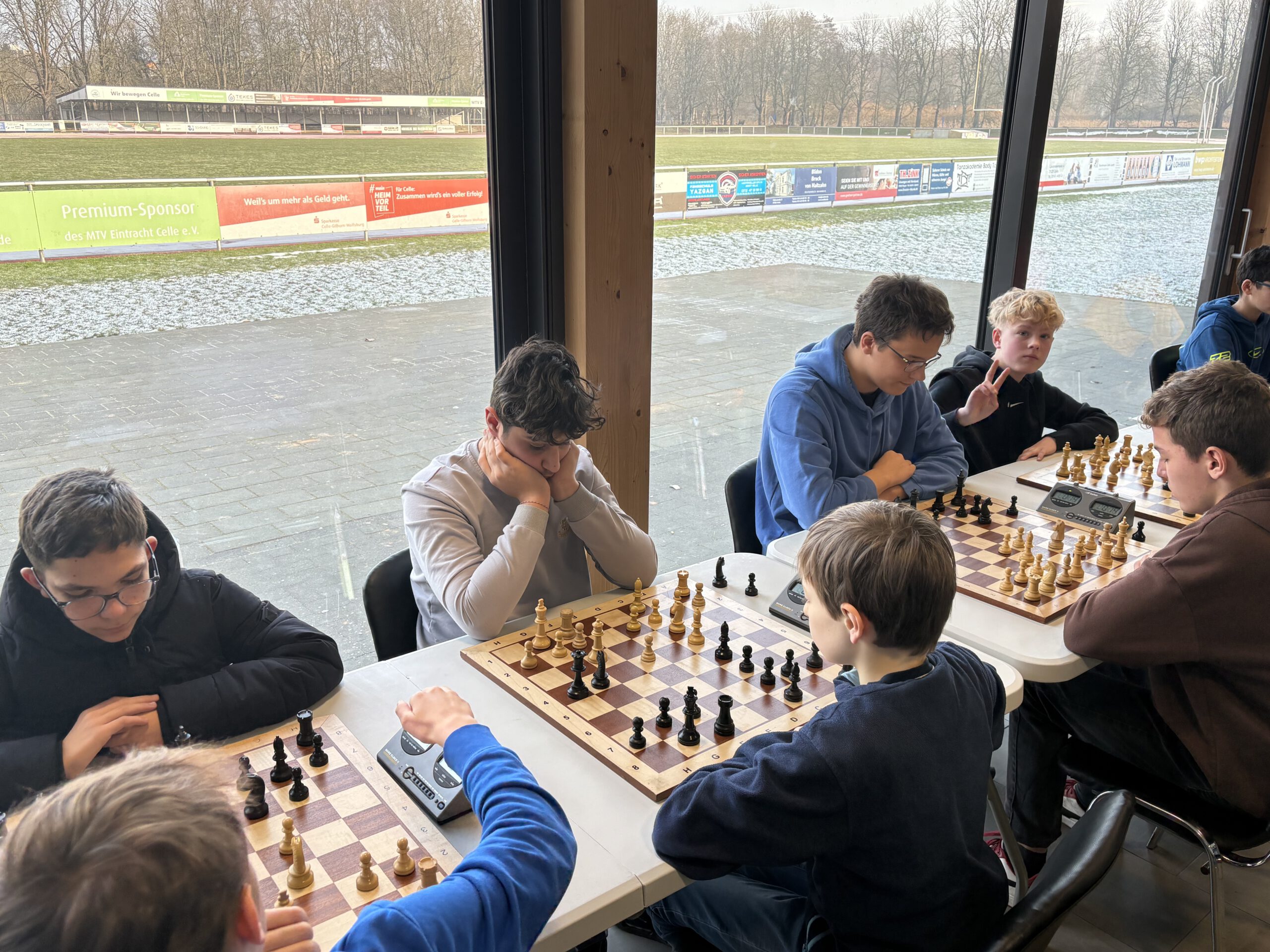 Am 23.01.2026 fand beim MTV Eintracht Celle die Vorrunde zur Bezirksmeisterschaft im Schulschach statt. Drei Mannschaften mit insgesamt 13 Teilnehmerinnen und Teilnehmern gingen für das Hölty an die Bretter. Die teilnehmenden Schulen aus dem Landkreis Celle sorgten mit rund 50 Schachbegeisterten für spannende und konzentrierte Partien.